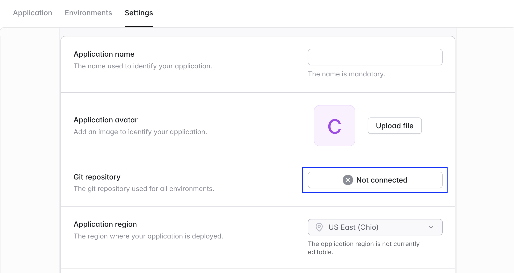 Applications can lose their connection to a git repository if Laravel Cloud’s API access is revoked from within the source control provider. When this happens, your application’s environments can no longer deploy your latest changes. Follow these steps to restore your git connection:- Navigate to your applications “Settings” page.