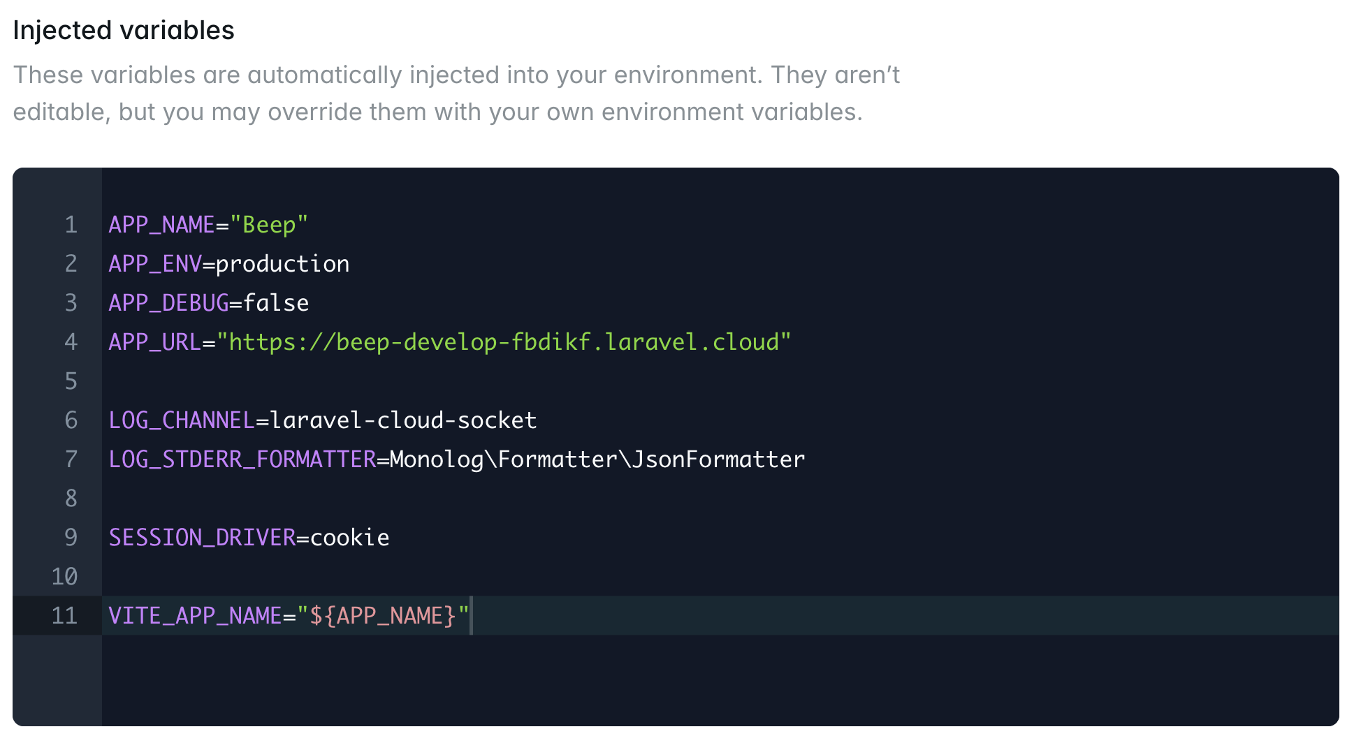(for example, after adding dynamic environment variables), you must prefix these commands with LARAVEL_CLOUD=1