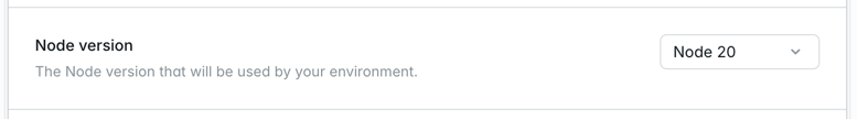 From your environment’s General Settings page, you may select the Node version that should be available to the build commands used to build your application during a deployment. After changing the Node version, a re-deployment is required in order for the changes to take effect.