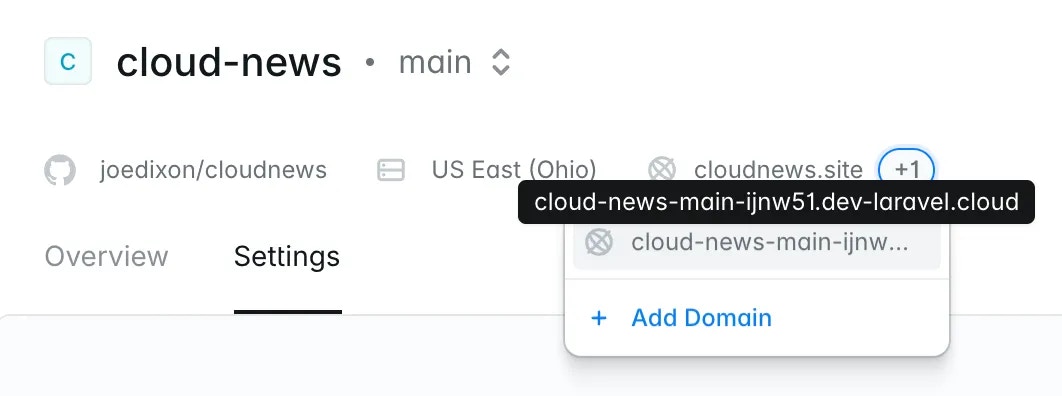 Each Laravel Cloud environment is assigned a freelaravel.cloud